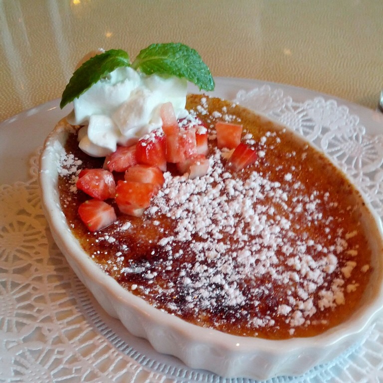I often choose Crème brûlée for my dessert. Mine came with diced strawberries on top of a perfect hard caramel layer covering the rich custard. The custard was a little on the sweeter side which is fine with me. For some, the sweeter custard with the powder sugar toping may be a bit much.