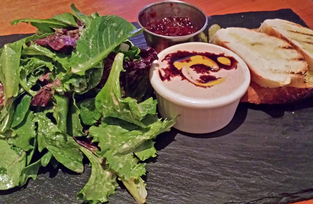 Our first appetizer was an amazing Chicken Liver Mousse with a Blackberry Compote and Black Truffles. It comes with toasted French baguette slices but after the first bite my wife told the waiter “we’re going to need more bread, we’re leaving none of this behind.” Served slightly chilled as a mousse it has a consistency close to whipped butter. The favor is muted and not as strong as a liver pâté. Amid bites my wife alternated between saying the names of friends who would love this and we have to come back here.
