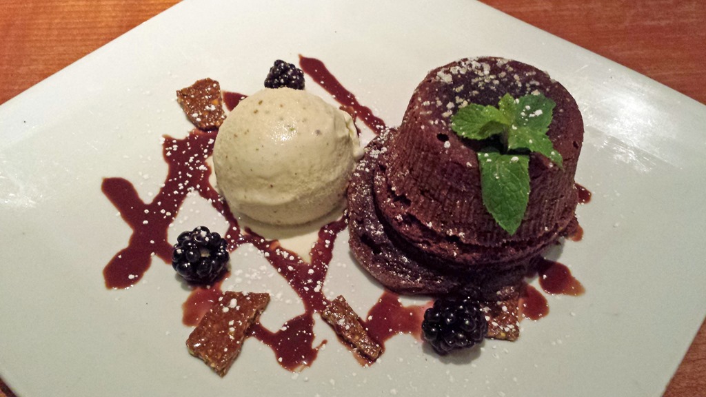 Given a choice I almost always pick a chocolate dessert. I am glad I tried the Chocolate ‛Lava’ Cake with Chocolate Sauce and Pistachio Brittle. The warm molten chocolate combined with the vanilla ice cream was heavenly. It is rich and probably best shared by two.