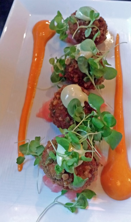 Next came the Fontina Risotto Balls. They were excellent, moist and perfectly cooked. The mild Fontina cheese is wonderful with the Risotto.