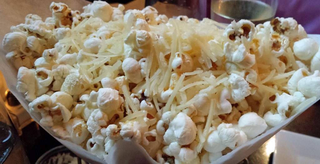 We started with the White Truffle-Parmesan Popcorn my wife’s co-workers have raved about. I couldn’t find the truffle taste in the cheese. I am sure it was there just not for me. The cheese lays on top of the popcorn and seemed to fall everywhere when I grabbed it. I like cheese on popcorn and the taste, but it was just hard for me to converse and concentrate on getting the right amount of cheese with my popcorn. Appetizers should be effortless.