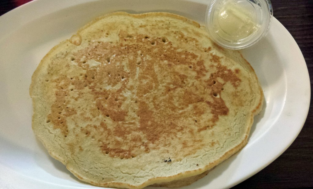 The pancake side covered much of the plate and was not super fluffy or doughy.
