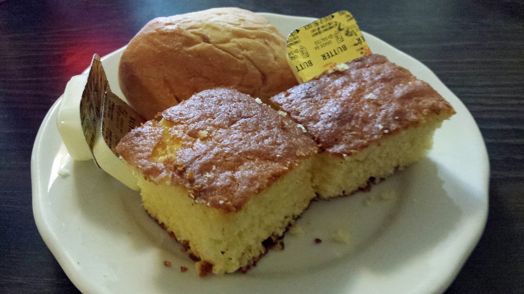 Two pieces of sweet moist buttery cornbread came with the meal.
