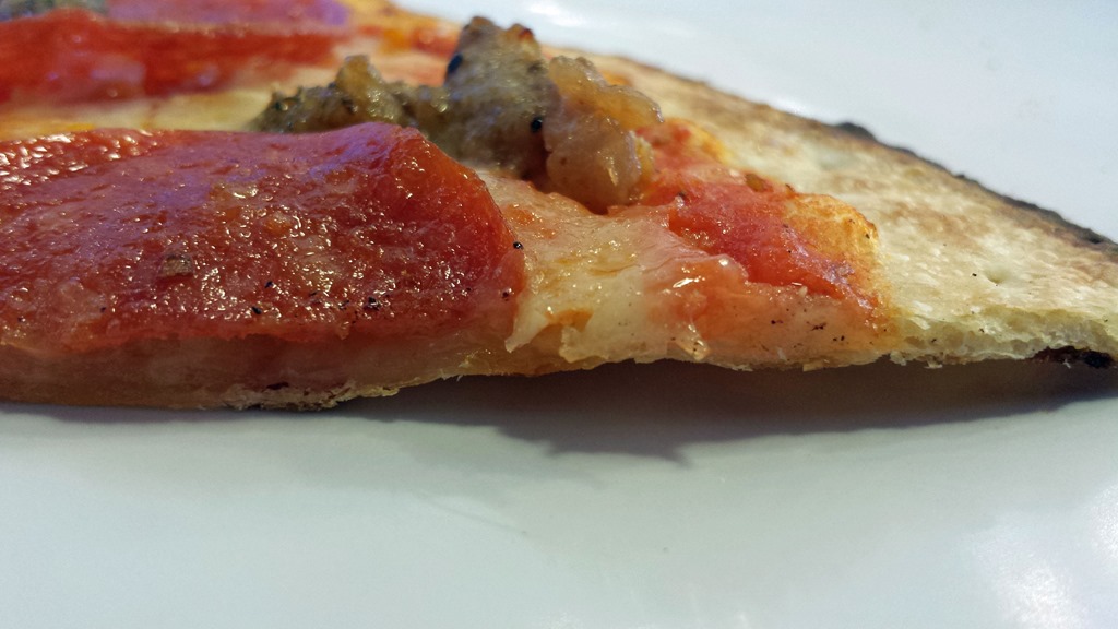My 4 slice personal pie was ready in just a few minutes and piping hot from the oven. I could see the super thin crust allows the pizza to cook quickly. The pizza was done perfectly with just a hint of char on the ultra-thin edges. The pizza had a great taste driven mostly by the choice of toppings. With thin crust pizza, and especially one as thin as this, it becomes less about the dough and more about it being just a holder for the toppings. Choose wisely!