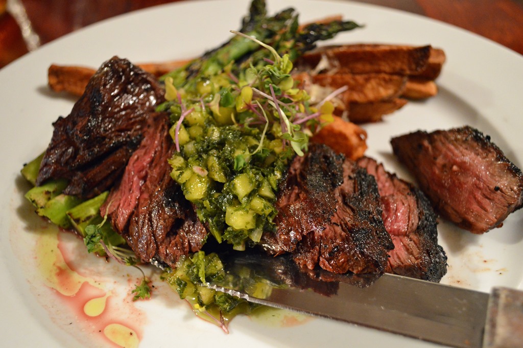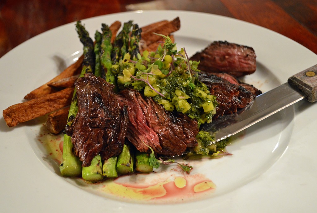 My wife had the braised short ribs with grilled asparagus, a chutney, and foode fries. I tasted the braised short rib and it melted in your mouth. They give you a big whopping knife but you honestly don’t need it. The meat is so tender it easily comes apart with your fork.