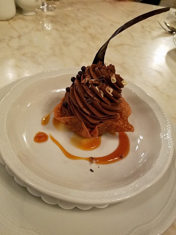 My Chocolate Mousse with Espresso, Grand Marnier, and Lace Tuile was amazing. It was smooth with just the right chocolate taste.