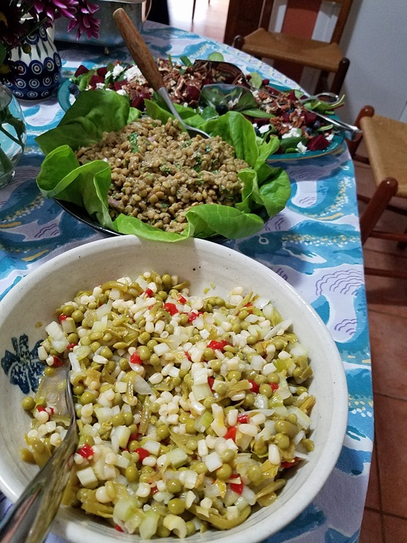 As often as possible my wife and I get together with a group of amazing friends near Charlottesville for wonderful conversation and great food. Everyone is a skilled cook and comes up with simple but savory dishes to satisfy our group that includes gluten free and vegetarians. Take a look at our lunch.
