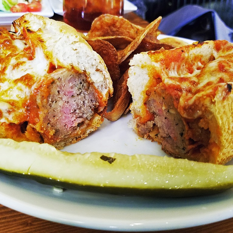 I decided on a Bacon Wrapped Meatball Sub on a Baguette with Mozzarella, Marinara, and House Chips for my entrée. The Meatball had a great taste complimented by the bacon flavor. I would order this again for sure.