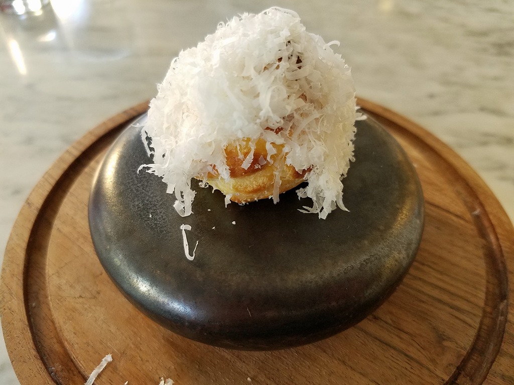 I am a big chocolate fan so this looked like a no brainer. Chocolate Ganache, Peanut Butter Foam, Bourbon Caramel, with Maldon Sea Salt.This was crazy good and as fine a dessert as I have had. If you have even the slightest fondness for chocolate you don’t want to miss this one.When it comes to flavor think Reese’s Peanut Cup on steroids.