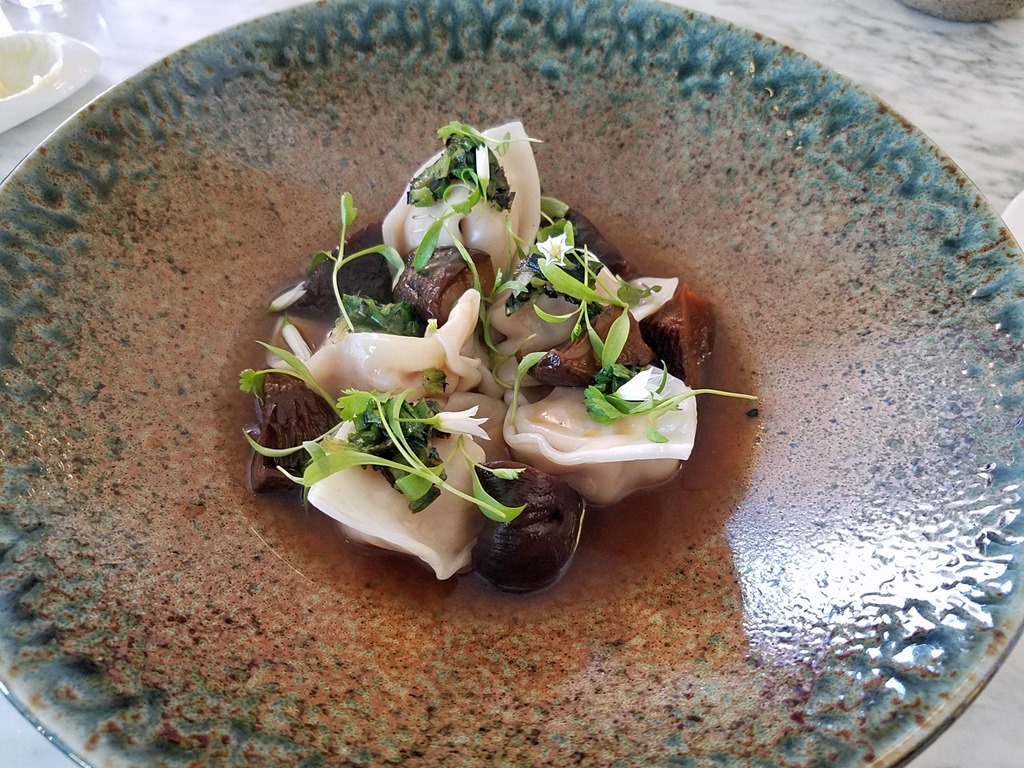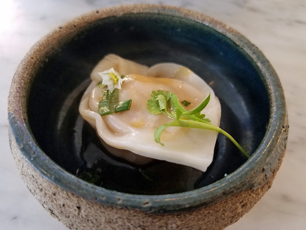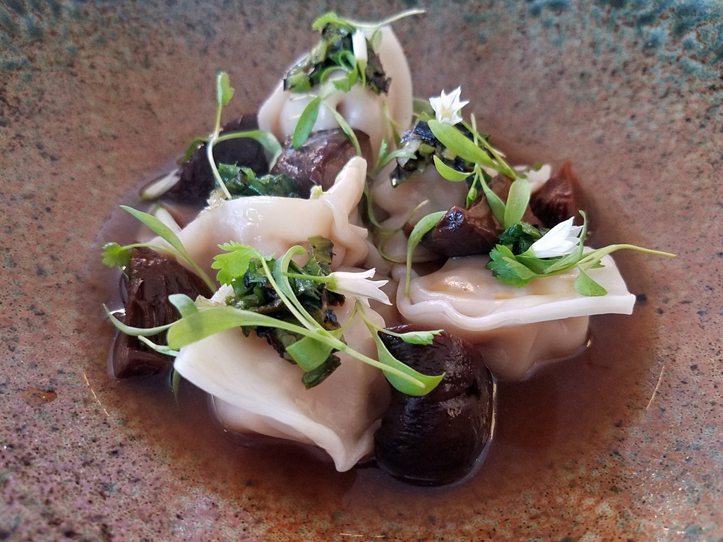 Pork & Shrimp Dumplings, Shiitake Mushrooms, Dashi, and Charred Scallions. The appetizers are all amazing. Chef David Dunlap has created beautifully flavorful appetizers with which you can make a meal.