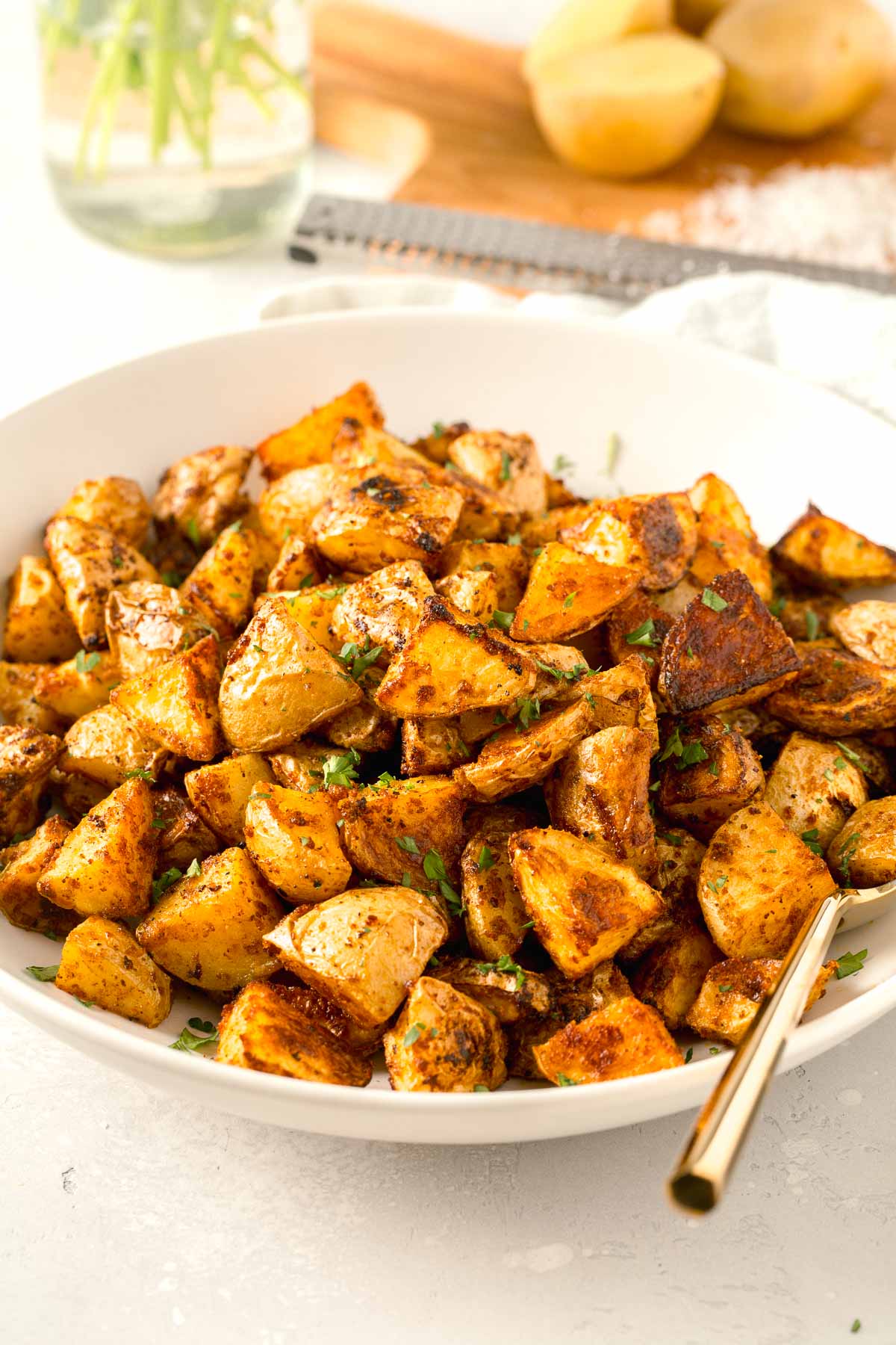 Roasted parmesan potatoes are going to be your no-brainer, go-to side dish! They’re crispy, cheesy, and full of smokey, garlicky flavor! These are the best potatoes on the face of the planet! Potatoes are arguably one of the most versatile side dishes when you need starch or something of more substance for a side dish.