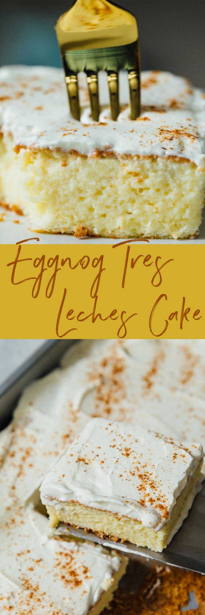 I really hate to use the word ‘moist’ to describe anything but what other adjective can I use for an eggnog tres leches cake? It’s not juicy because that’d be disgusting. Or soggy because that just ruins it. It’s certainly light and airy and full of flavor and it has the most incredible texture and honestly?