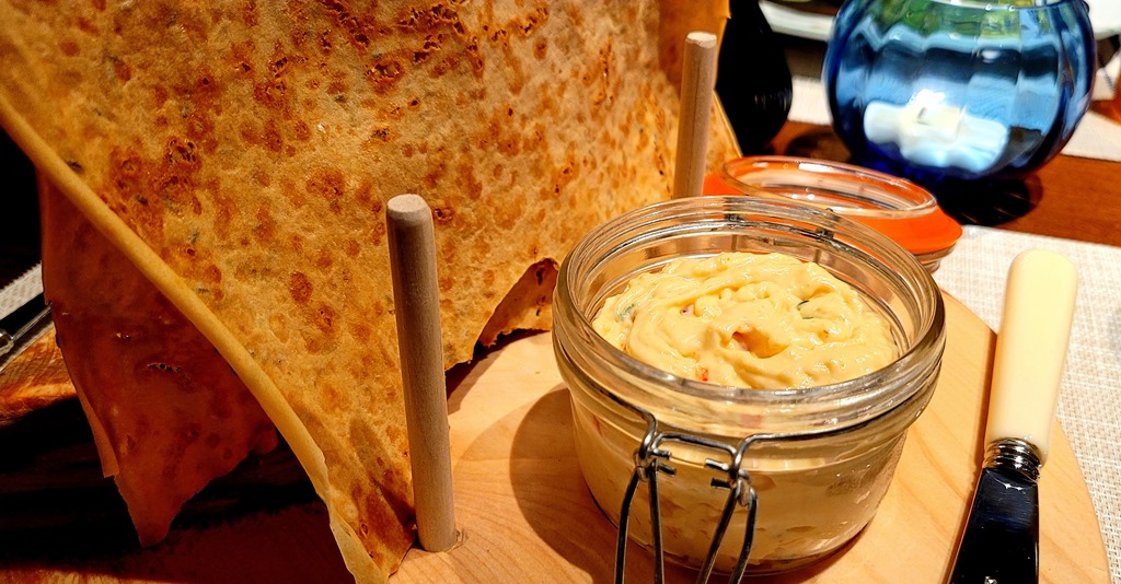 A tradition started by Chef John, the bread came out in the box with heated rocks along with the excellent compounded butters. A Sea Salt Whipped butter and my favorite, a Lemon and Chive butter.