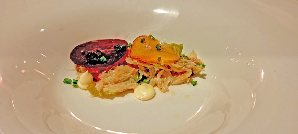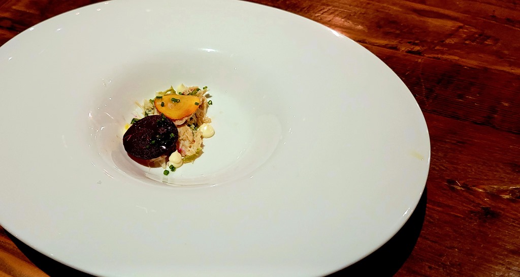 Next came Crab with Pickled Beets and a Tangerine Olive Oil Aioli. The pickled beets provided a nice sweet and sour crunch with the crab.