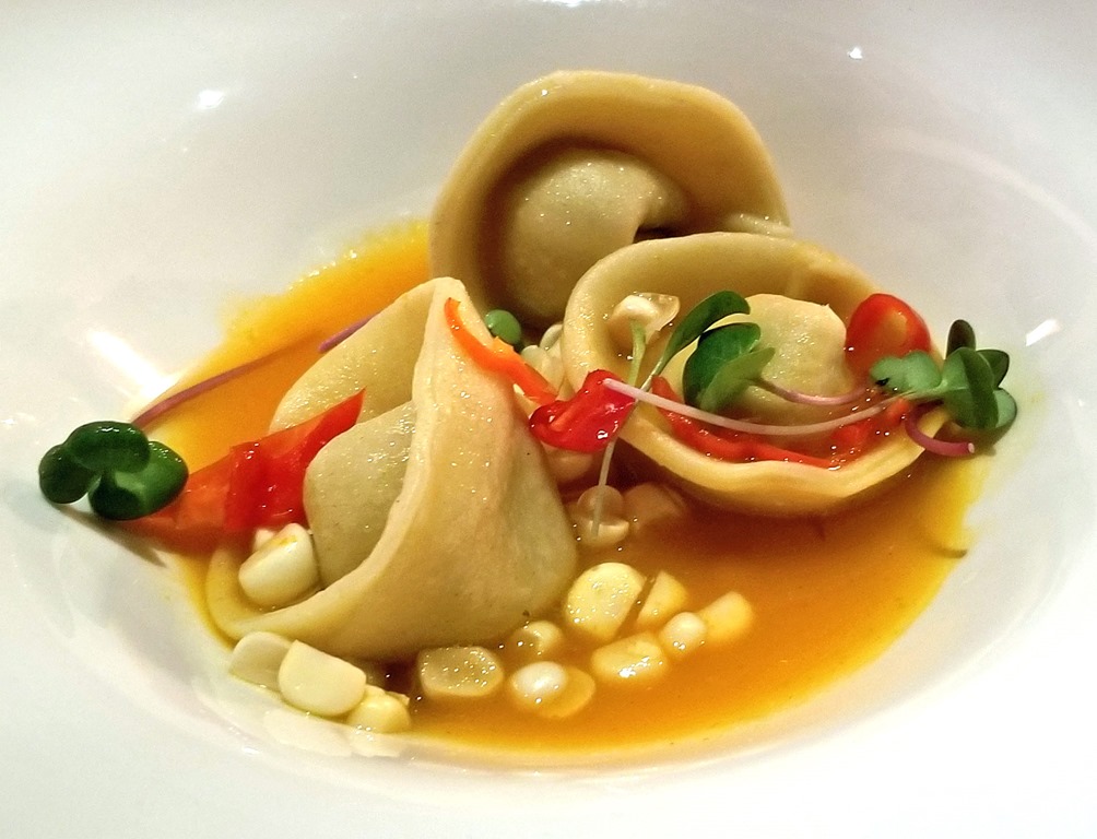 My favorite dish of the night, Sweet Corn & Summer Truffle Tortelloni with Pickled Aji-Dolce Pepper and Sungold Tomato Dashi. The home-made pasta was cooked perfectly with a super creamy sweet corn filling that was fabulous.