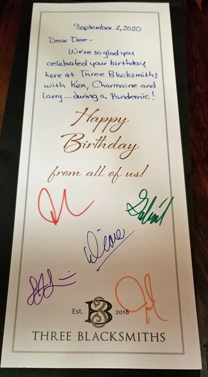 We joined my Executive Event Chef Ken and Dee at dinner to celebrate her birthday. The staff all signed a nice card for her. A small but meaningful gesture.