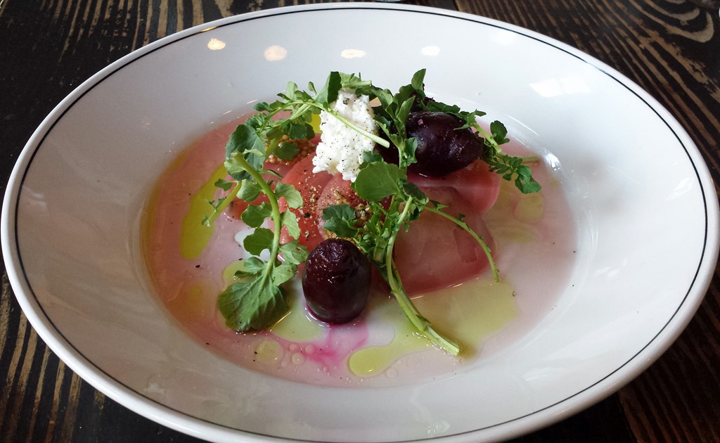 Elizabeth had this Wheat Berry Salad with Put-up Tomato Dressing, Shallot, Basil, ‘Feta,’ Miner’s Lettuce, and Bread Crumbs which she liked a lot.